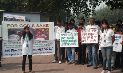 In an effort to combat the high use of crackers, THE EARTH SAVIOURS FOUNDATION organised an anti – crackers rally on the streets of Cannaught Place . This rally raised anti – cracker slogans and held aloft banners depicting the hazards of using fire crackers. The Legal Aid Society members were invited for this rally by this NGO's director Mr. Ravi Kalra. Mr. Sumit Sonkar and Ms. Parineet Kaur have participated in the rally.